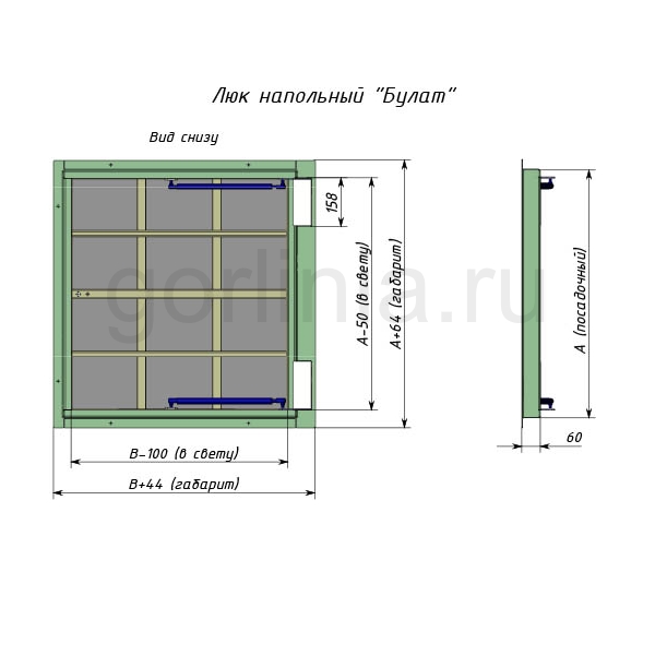 Заказная конструкция с подъемным механизмом по стороне 600 и удобным световым окном 550*600 для спуска по лестнице в погреб.