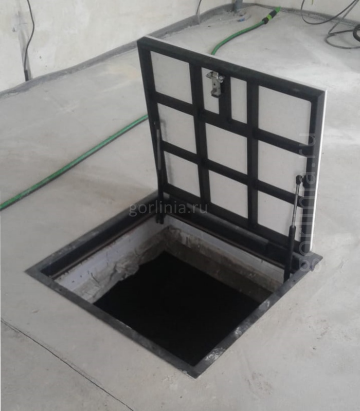 Заказная конструкция с подъемным механизмом по стороне 600 и удобным световым окном 550*700 для спуска по лестнице в погреб.