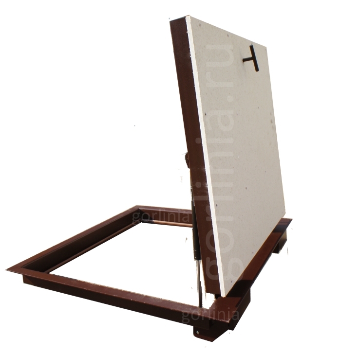 Облегченная модель прямоугольного исполнения без щелей в полу с уведенными за ось открывания петлями. Легкая ходовая часть и удобный монтаж. Комфортный световой проем лаза 750*800 для спуска по лестнице мешков, ящиков, овощей и солений в домашний погреб. При формировании посадочного отверстия обратите внимание, что защитные кожухи шарниров выходят за посадочную отметку по плечевой стороне 900 (см фото).