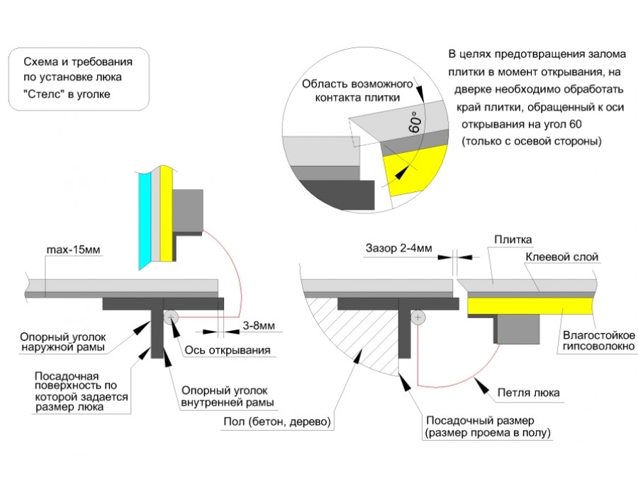 Вы ходите по закрытой крышке, как по обычному полу, обвязка полотна держит нагрузку до 200 кг на квадратный метр. Каркас опирается на трубу 15х15 по трем сторонам, на петли по четвертой.