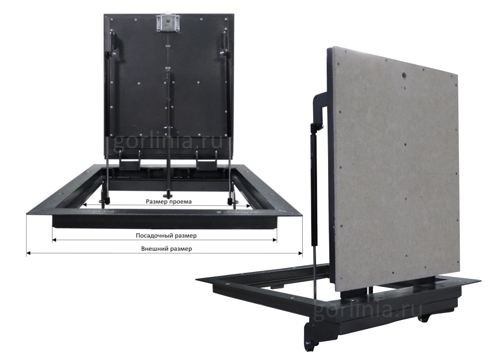 Предупреждение: УЗКИЙ ПРОЕМ 440*750! Лаз предназначен для технологического доступа в половые ревизионные ниши с трубами водоснабжения, задвижками, насосами и приборами учета.Планируете использовать механизм для спуска в подвал по лестнице? Купите изделие с петлей по стороне 600.