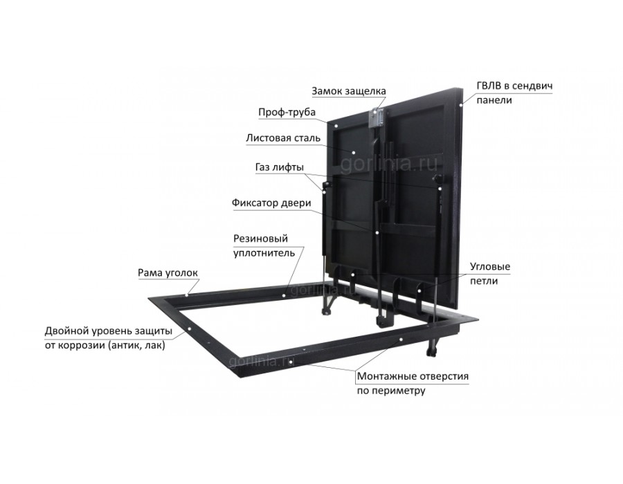 - дверца открывается на пневматических упорах;