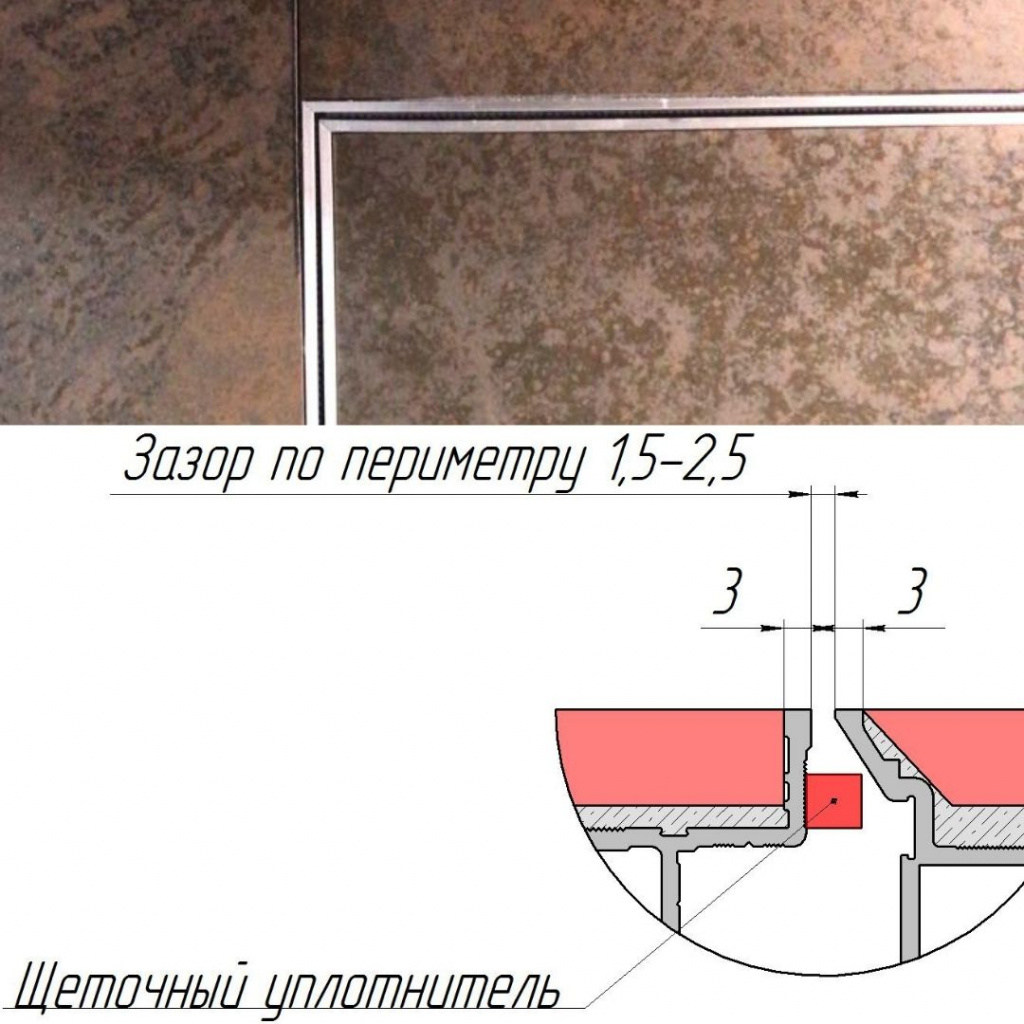 - невидимка без обрамления, когда дверной зазор проходит по швам плитки.